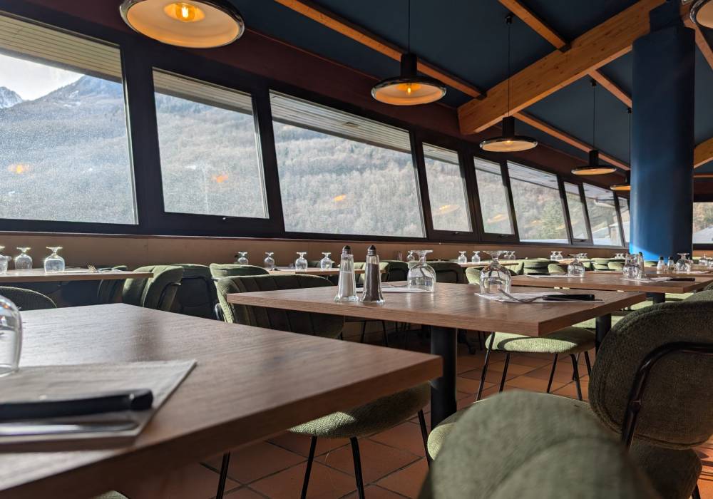 En demi-pension ou en pension complète, les repas sont servis à l’assiette ou en buffet dans la salle panoramique du restaurant du village vacances.